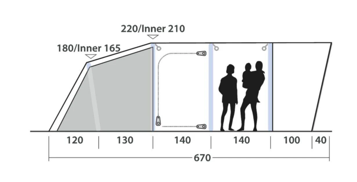 - Sewn-in groundsheet for maximum comfort, protection from the elements and bugs.